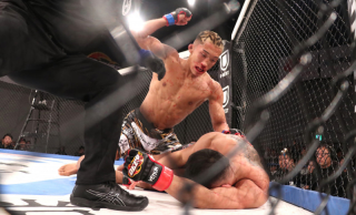 1Rに相本は、プレスをかけながらインローでダメージを与えていく。高橋は右を当てて、相本から出血させる。それでも相本は下がらずに、インローとパンチを打っていく。打ち合いの中で相本のパンチが入り、高橋がダウン。そのままパウンド攻撃をする相本。すぐレフェリーが試合をストップした。
