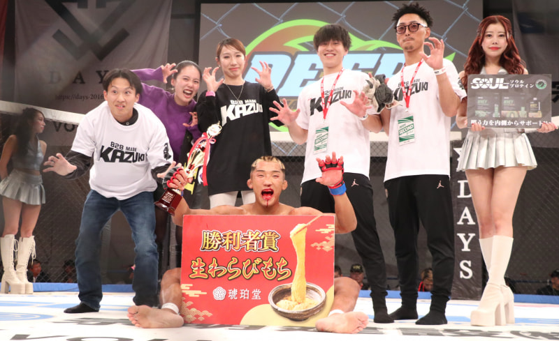 TKO勝利の相本は「いい喧嘩ができた。トーナメント一回戦前に失神して、無駄にしてしまったので、受けてくれた高橋さんに拍手を!あと、新居すぐるさんが相手を探しているとか言っているんですけど、しっかり準備して命をかけているので今年は休みます。来年RIZINでやります」とアピールした。