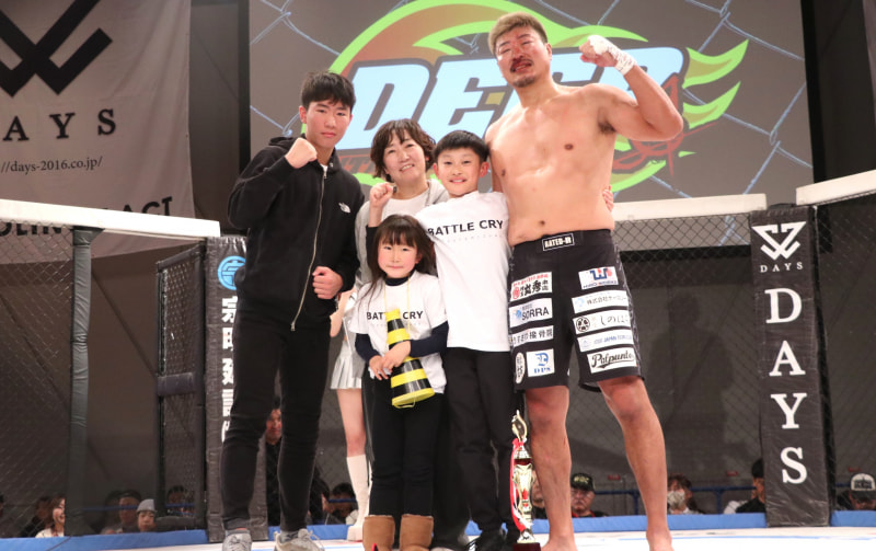 水野竜也が今回の試合で引退表明。家族と記念撮影