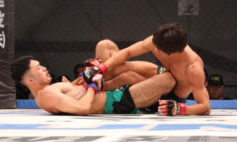 河村はパンチをヒットしてヒールで追い込んだ
