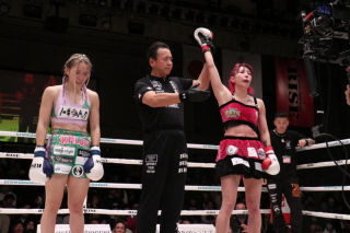 タフな菊池はガードを固めながら反撃のチャンスを伺うが、糸口は見えず。3R、仕留めたい桃花は怒涛のパンチラッシュ。ダウンこそ奪えなかったが、圧倒的なパフォーマンスで華々しいRISEデビュー勝利を飾った。