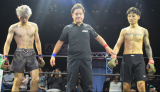 再開後はパンチの打ち合いから前に出るライアン。場内が沸く。鈴木の左フックから右ストレートがヒット。堪らず組みつくライアンだが、鈴木は腰が強い。鈴木の投げ。これは耐えたライアンが四つの状態から膝を放つ。鈴木を必死にコーナーに詰めたところで試合終了のゴング。
