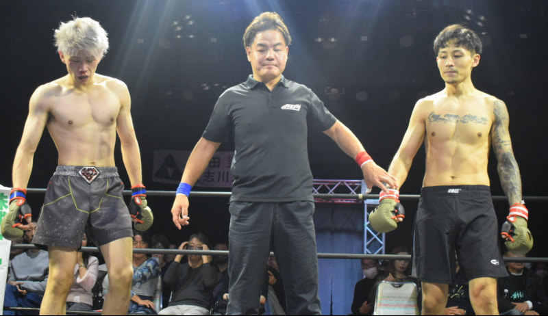 勝敗は旗判定へ。1Rのフィニッシュに近づいた極めを取ったジャッジ、イリエマン以外は鈴木を支持。“サムライ2世”ライアンのMMAデビュー戦は、黒星スタートとなった。