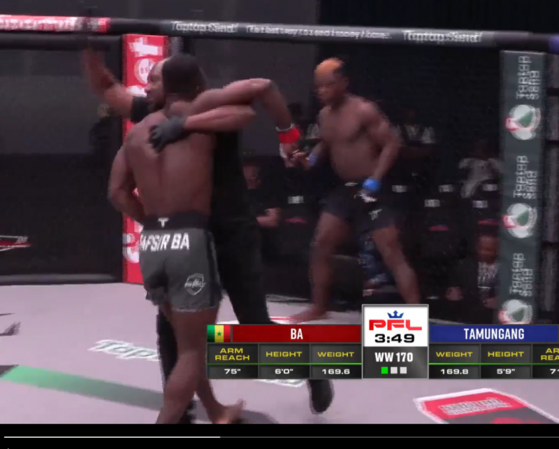 レフェリーが割って入り、ムハメドの勝利に(@PFLMMA)