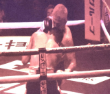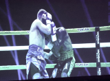 - 2R、左ボディでダウン奪取(会場オーロラビジョンより)