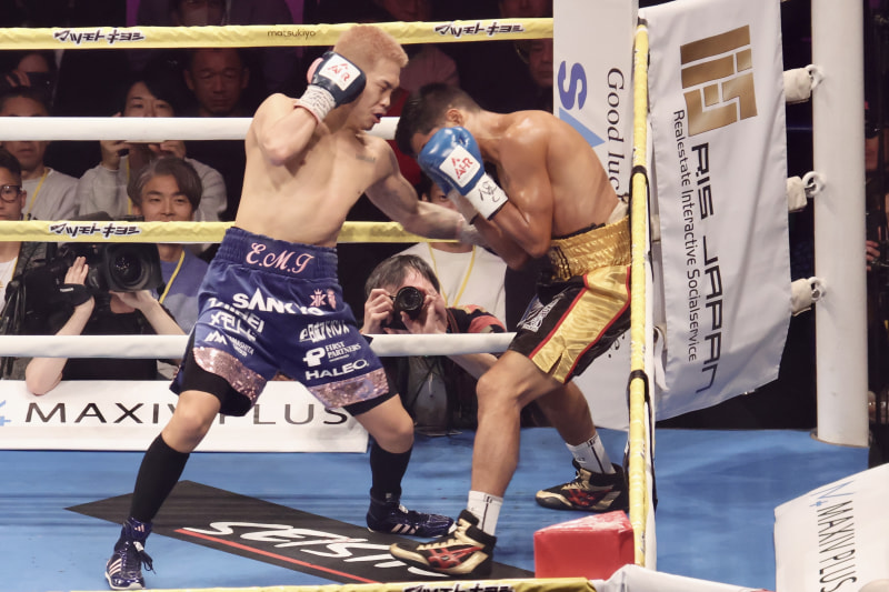 左ボディでくの字にさせる井岡