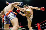 1Rからリベンジに燃えるレンタは開始早々力強く前に出て攻勢に出る。中盤以降はパワフルな首相撲でHIROを捕獲。ヒザ蹴りの連打に加え、ヒジを振り回す。クリーンヒットすれば大流血も免れない。ムエタイの本場タイでも活躍するキャリアが活きた攻撃だった。