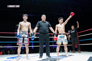 3R、もうあとがないHIROは積極的に前に出ようとするが、逆にレンタはパンチのコンビネーションで相手の前進を食い止め、再び首相撲からのヒザ蹴りでダメ押し。接近戦を嫌がったHIROが距離をとれば、レンタはミドルキックの連打で完全に試合のリズムを握った。そして終盤にはHIROの目尻をカットし、大流血に追い込んだ。まさに近づいて良し、離れて良し。判定は文句なしに3-0でレンタ。見事なリベンジを果たした勝者は「来年は自分に勝った選手にリベンジするのはもちろん、世界のベルトを獲ります」と力強く宣言した。