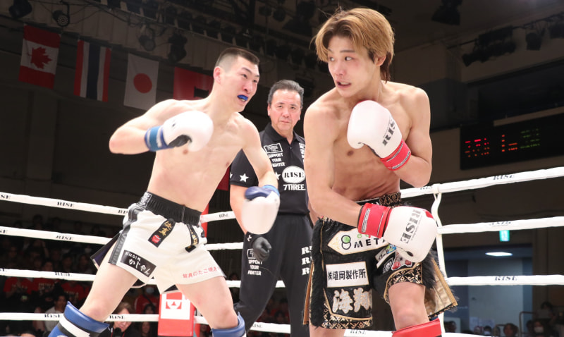 2試合中止となったが、不戦勝の長谷川海翔(右)と健真がエキシビションマッチで対戦
