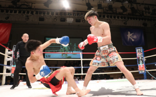 1Rにサウスポー構えの東は左ボディストレートをヒット。新井は左右に構えをスイッチし、蹴りからパンチへとつなげた。打ち合いになった時に東は、左フックをクリーンヒット。新井は倒れてすぐに立とうともするもフラついてしまう。レフェリーが試合をストップした。