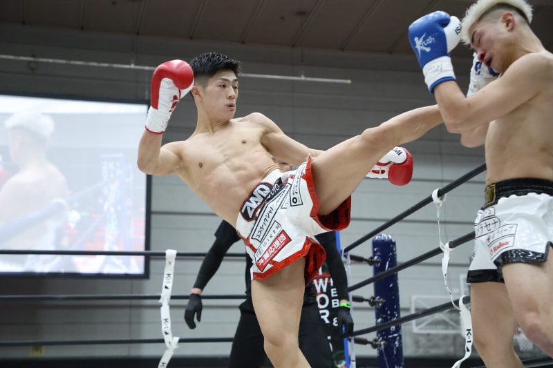 斗麗がハイキックを当てる