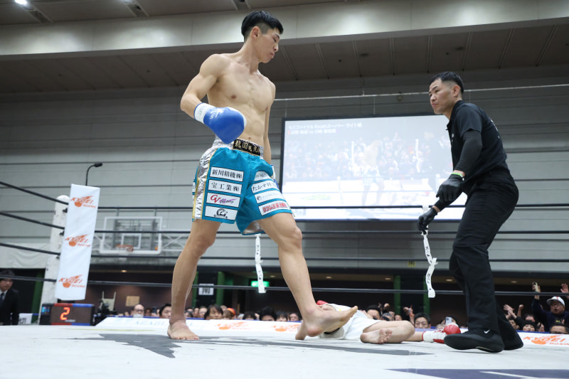 2Rになると、川﨑がフェイントから強烈な左ジャブ!これが近藤のアゴを見事にとらえ、大の字になってダウン。そのまま、川﨑が圧巻のKO勝ちを収めた。