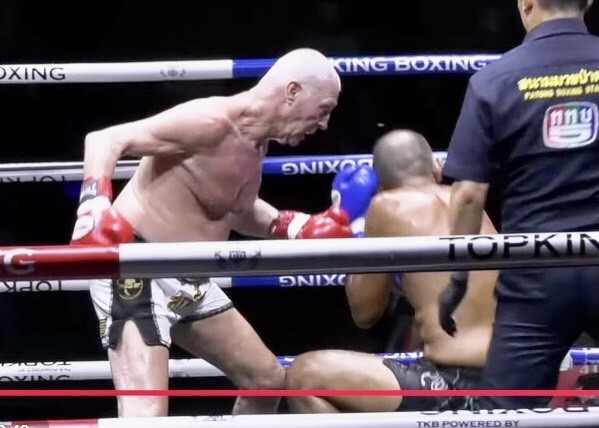 左ボディで1度目のダウン!(YouTube/PATONG BOXING STADIUM SAINAMYEN RD)