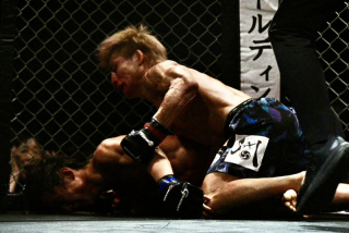 これで倒れた小林にパウンドで追撃したところでレフェリーがストップし、小田がTKO勝ち。