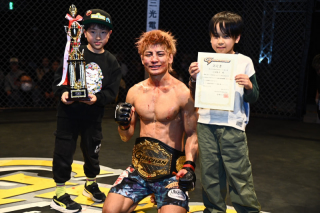 マイクを握った小田は「本日は福岡から大阪まで応援、そしてPPVでの応援ありがとうございます。去年の10月に僕はUFCに行きたくて、そのためにも中国で勝たなくていけないのに、そこで負けてしまって何を目標に生きていったらいいのか、心に穴が空いて。頑張ろうにも身体が前に行かず、すごく自分の中で葛藤があったこの4、5カ月でした。それでも自分なりに負けずに頑張ったら、いいことあるんだな、と伝えたくて格闘技をやっています。なんとか勝利で恩返しできて嬉しいです。まだまだUFCを目指して駆け上がっていきますので応援よろしくお願いします。そして自分が格闘技をやっているもうひとつ理由があり、子供たちに夢を与えたいし、いろんな経験をしてほしいなと思っています。だから今日、一緒に写真を撮りましょう。これを機に格闘技をやってもらえたら」とあいさつした。
