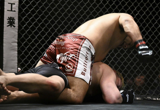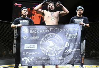 2R、右ストレートを当てるハシモトは、パンチ連打から内股でテイクダウン。バックマウントからのパウンドでレフェリーがストップし、ハシモトがTKO勝利で王座挑戦権を獲得した。