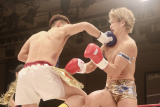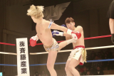 そして4R、パンチで優勢の高橋が、組み際にヒジも繰り出す。すると高橋の左ヒジが、佐藤の右まぶたにヒット!たちまち流血し、高橋は拳を突き出した。