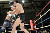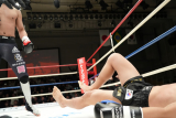 1R、笠原はノッシノッシと前進。ロープ、コーナーに追い詰めたイジュンにパンチや蹴りを打たせながら、効いてないポーズ。終盤、イジュンをコーナーに追い詰めると、悶絶のレバーブロー!イジュンは苦悶の表情でダウン。しかしカウント内に立ち上がる。
