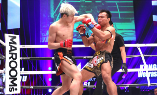 1Rに久井は飛び前蹴りで入り、ワンツー。ゴンナパーは左ローキックで吹っ飛ばし、右フックをヒット。久井は三日月蹴りで反撃も、ゴンナパーはプレスをかけて右ヒジで攻撃した。