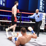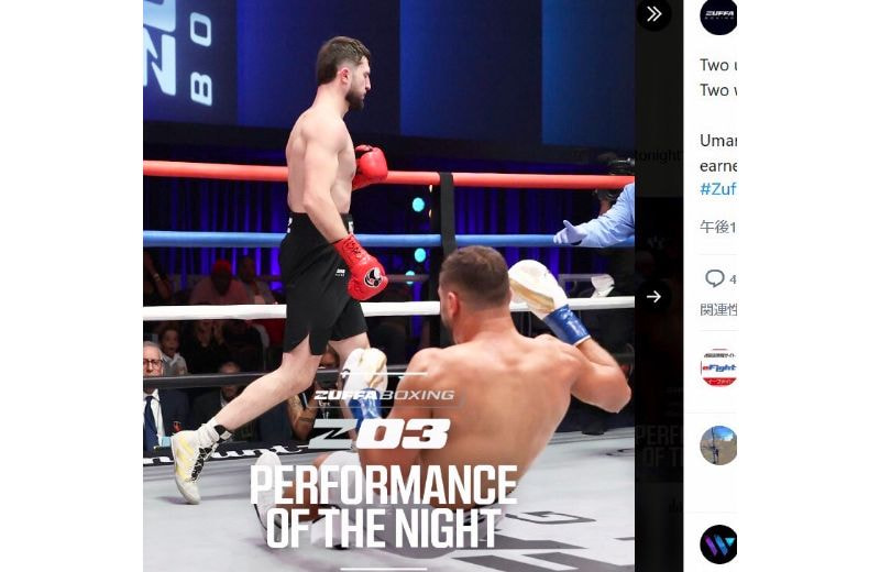 一撃アッパーに相手はゆっくり倒れる @zuffaboxing