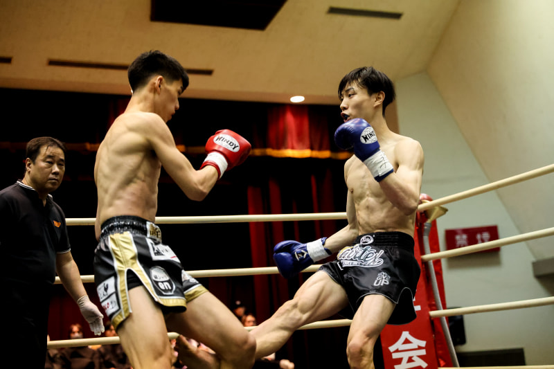 身長差がある対戦に。椋橋は首相撲に持ち込もうとする村木に右のオーバーハンドのカウンターで二度のダウンを奪ってデビュー戦初勝利を飾った。