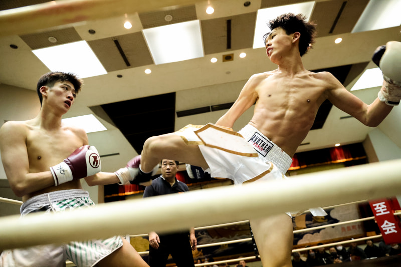 2R、越野がボディーストレートやヒザをクリーンヒットさせ、滑飛が徐々に攻めづらくなった一瞬を突いたカウンターの右フックが滑飛の顎を捉えダウン奪取。
