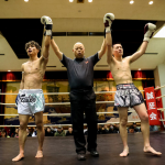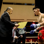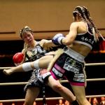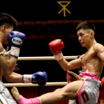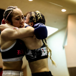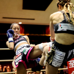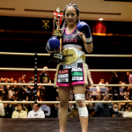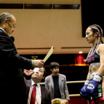 ミネルヴァアトム級暫定王座決定戦でほのか(右)に判定勝ちしたRIANA (左)