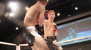 1Rにサウスポー構えの海飛はサイドキックからハイキックへつなげてペースを作る。関はカウンターのパンチを打ちつつダブルレッグを仕掛ける。反応した海飛はヒザ蹴りを合わせる場面も。関はパンチからタックル狙いで反撃した。