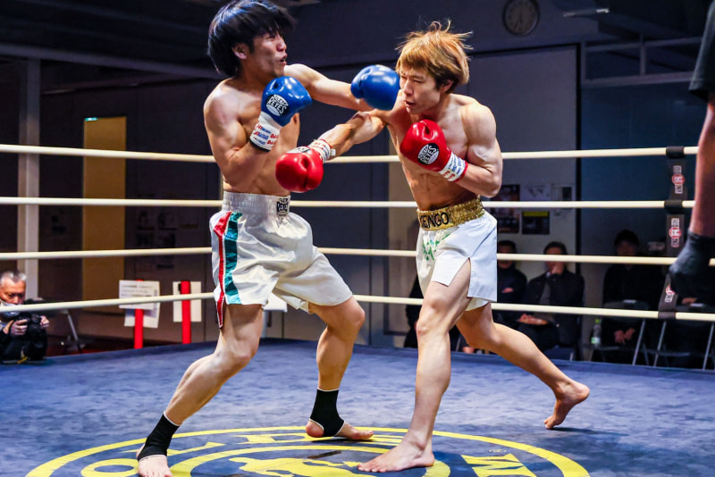 1R、左前蹴りで距離を取るオーソドックスのKENGOは左ミドル、パンチ連打を見せて右ストレートをクリーンヒット。後手の信樹にパンチラッシュを仕掛けてKENGOがスタンディングダウンを奪う。さらに連打で追い込み2度目のダウン奪取。再開後もKENGOがラッシュし、信樹が防戦一方に。レフェリーがストップし、KENGOがTKO勝ち。