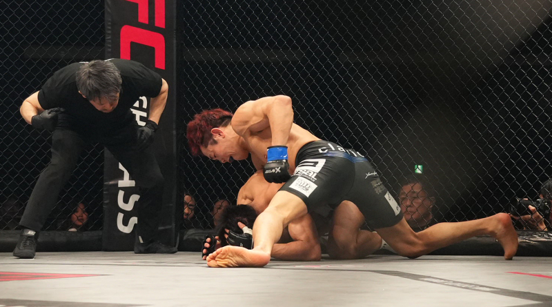 猿飛流が上になり、パウンド攻撃