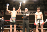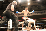 2R、左パンチをヒットさせ2度目のダウンを奪い、3R肘カットでドクターチェックを呼び込まれるが、角谷も気持ちを切らさず向かっていく。しかし決定打は奪えず、ソン・ジュンヒョクが3~5ポイントつける大差でプロデビュー戦を飾った。