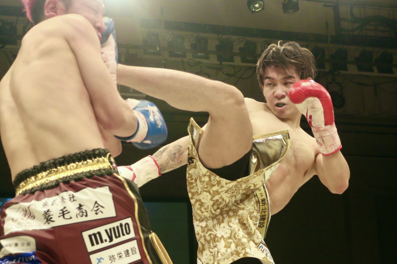 長野の強打ペースで進むが、早田も下がりながらもパンチ手数、更にボディヒザも入れる。2R中盤には、早田の左目上から出血し、ドクターチェック。