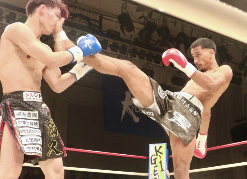 長い脚で前蹴りをヒット!!
