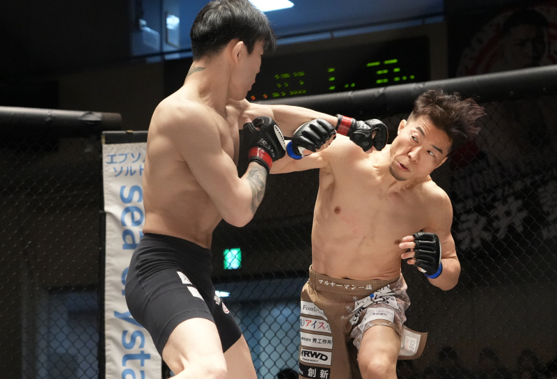 青野もパスガードを狙い続け執拗なまでのトップキープ。中村が動き、隙を見せると首に腕を回しチョークを仕掛ける場面も。一方の中村も下から三角絞めのセットで青野を固定し、下からパンチやヒジの連打とダメージを与えて反撃する流れ。後半は、青野がインサイドガードから強いパウンドを落とすなど印象を残した。