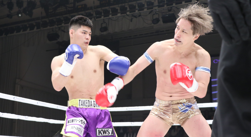 基康がパンチ、三日月蹴り、インローで猛反撃