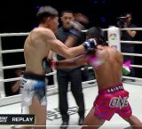 - 別角度のリプレイ、蹴りを放つ前、実は左レバーが直撃していたのだ!@ONE