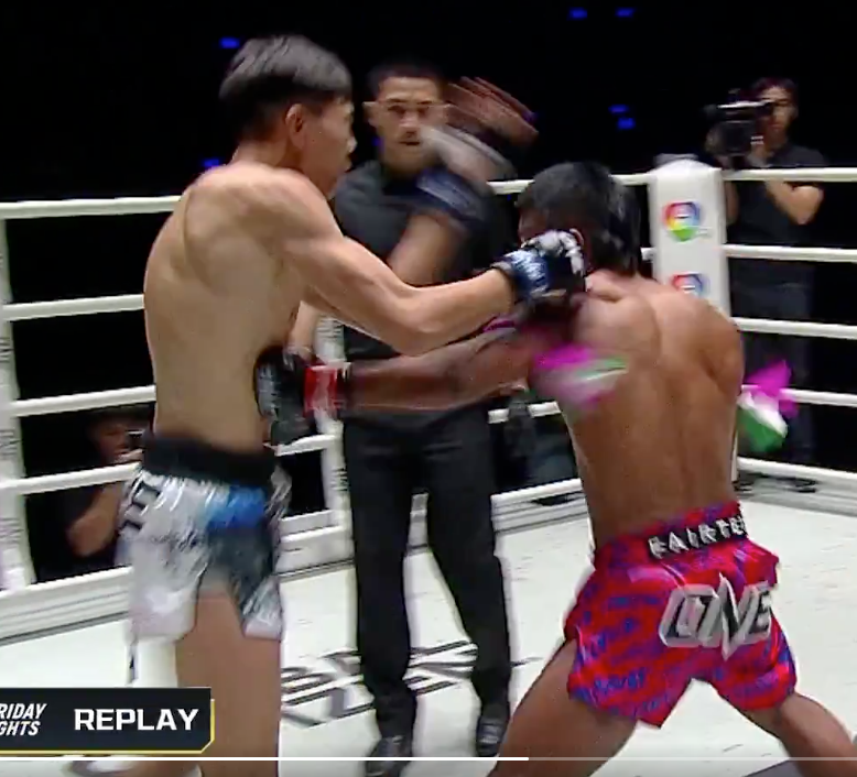 別角度のリプレイ、蹴りを放つ前、実は左レバーが直撃していたのだ!@ONE