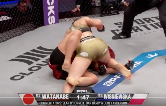 パウンドを被弾する渡辺@PFLより