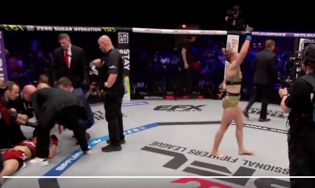 試合後も倒れたままの渡辺@PFLより