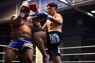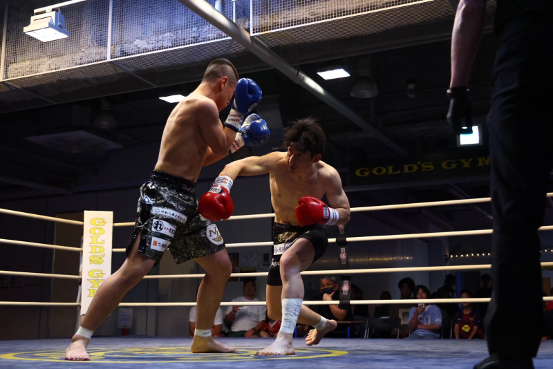 1R、両腕でガードしながら前に出る植村に、伊藤は左ジャブを突きながら距離を取る。伊藤が細かいパンチを当てるも、植村は強打のパンチから右ハイを見せて驚かせる。