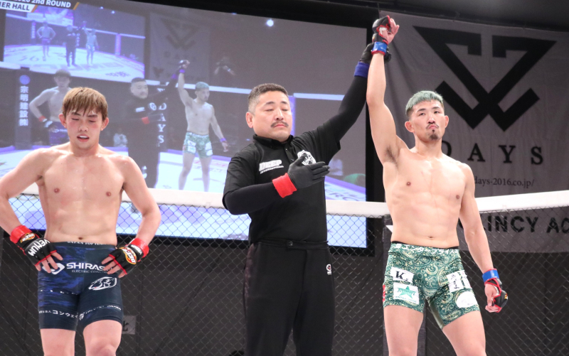 安井(左)は右目を負傷して森にTKO負けも、大会後に反則の影響と判断されて反則勝ちに