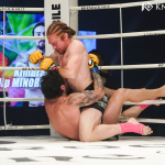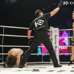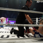 木村ミノル(右)が26秒でカーライル(左)にKO負け