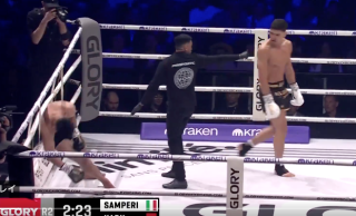 4月26日(日本時間)にオランダ・ロッテルダムで開催された格闘技イベント『GLORY 107』のウェルター級マッチにて、マイケル・サンペリ(25=イタリア)がサイード・カビール(28=モロッコ)に2R KO勝利。強烈な左フックで相手は失神ダウンした。