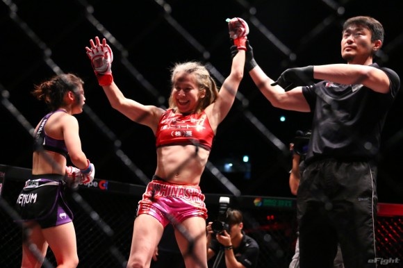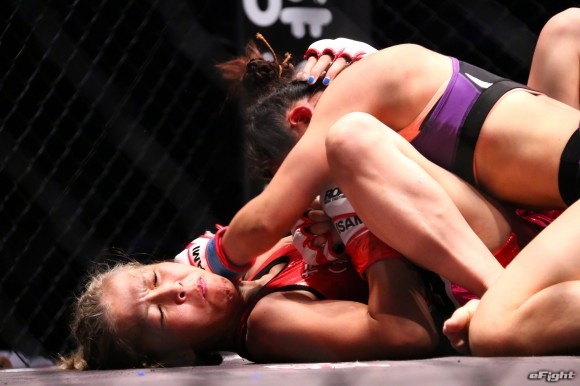 マウントを取りパンチを叩き込んだしなしがTKO勝ち