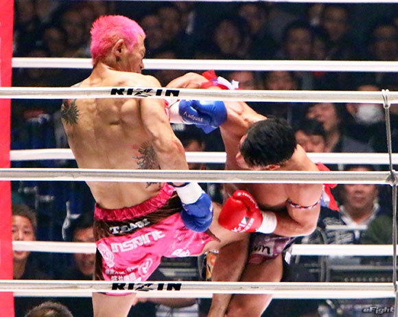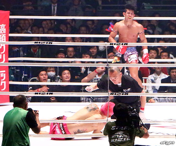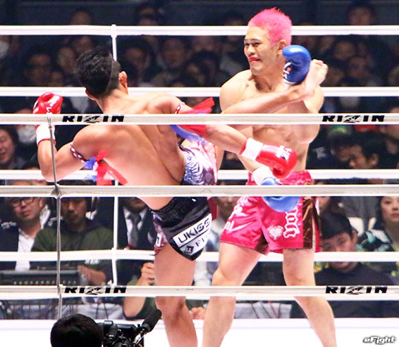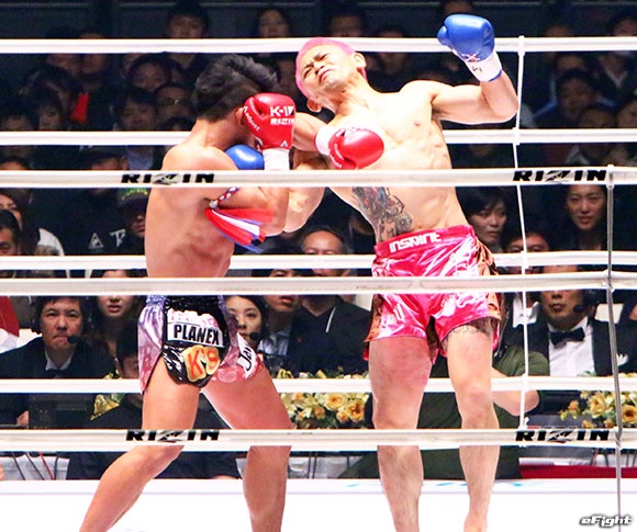 HIROYA(右)が右フックを打ち抜きKO勝利