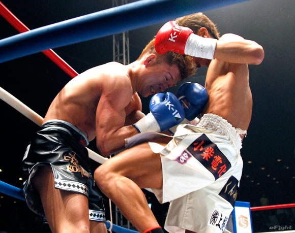 島野(右)が徹底的にボディを打ちまくり、KOでリベンジに成功した