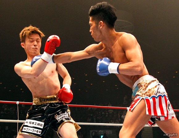 篠原(右)は伸びのあるストレートを始め、重く鋭いパンチを持っている