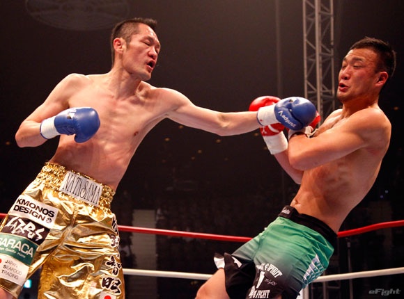 元WBKF世界王者の肩書きも持つ牧野(左)だが、内山(右)に苦戦を強いられた