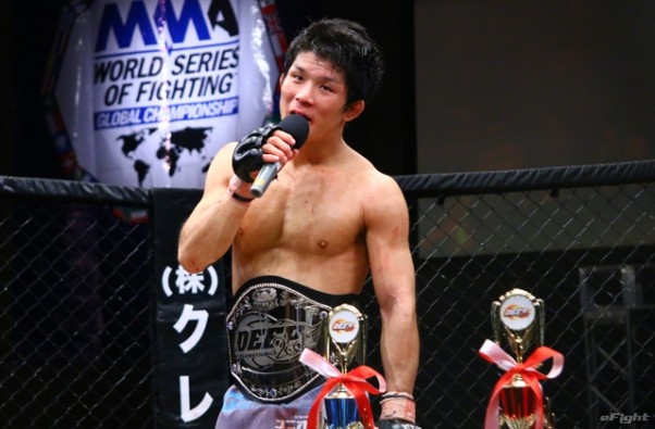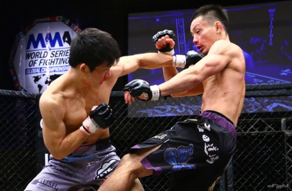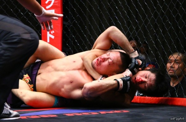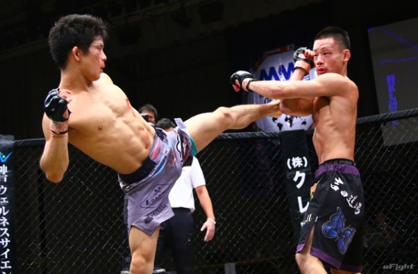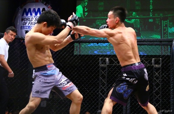 DEEPストロー級初代王座を懸けて白熱した攻防を繰り広げたサトー(左)と小島(右)