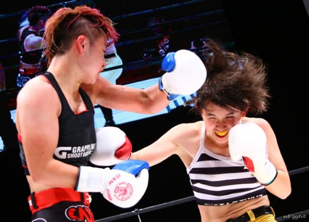 前回以上の接戦となったMIO(左)と朱里(右)。MIOが気力で競り勝った